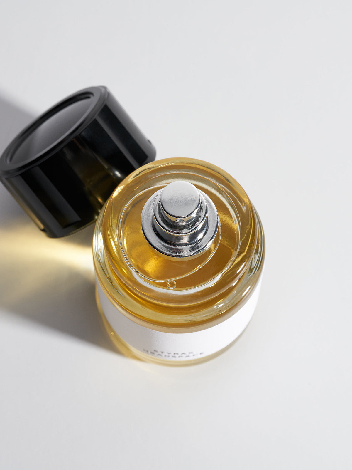 TAKE THE REINS. CONQUER TIME, CONQUER YOURSELF. CHIVALROUSLY GRAPPLING, LABDANUM AND AMBER CONJURE THE IMAGE OF A POLISHED SADDLE WARMED AGAINST THE BODY OF A STEED, UNITING WITH LEATHERY STYRAX AND THE APRICOT NOTES OF OSMANTHUS. A WARM AND RADIANT TRIBUTE TO SKIN IN ALL KINGDOMS: PLANT, ANIMAL AND HUMAN.